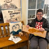 Doreen Beckstead is an artist at our Salem location. She is inspired by figures from classic shows and media, including the television series Magnum PI, Night Rider, Jeopardy, and Chips. Doreen has been exploring different artistic mediums with the continued subject of the shows. She has made a zine, ceramic sculptures, binders, and many paintings and drawings with different mediums all surrounding Tom Selleck and Magnum PI since beginning her work with us. We are excited to continue to work with her and see how her body of work grows.